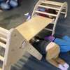 Le Triangle de Pikler va permettre aux enfants, dès le plus jeune âge, de développer toutes sortes d'explorations en relation avec leurs aptitudes motrices du moment. Les plus petits vont chercher à ramper et à passer en dessous, puis à se hisser en s'appuyant sur les premiers barreaux, tandis que les plus grands vont l'escalader et passer par dessus.